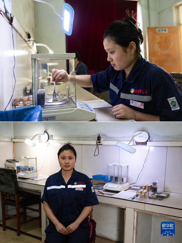 拼版照片:上圖為在黑龍江省七臺河市,寶泰隆新材料股份有限公司焦化廠工人佟志輝在進行煤質分析;下圖為佟志輝在崗位上留影(3月7日攝)。