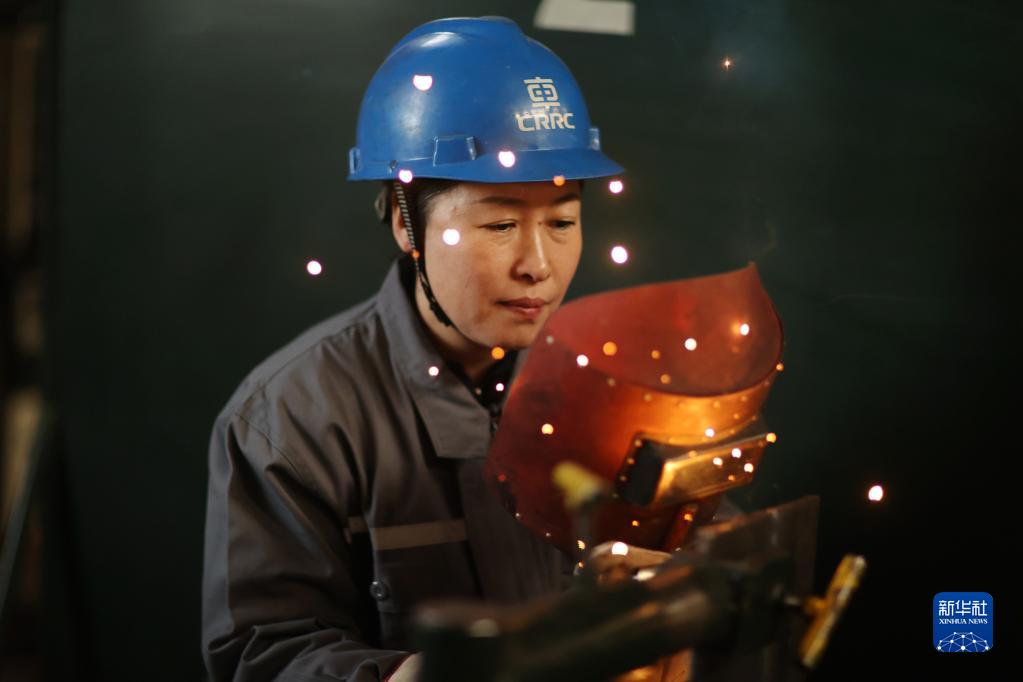 3月6日,中車齊車集團齊車公司電焊工張敬華在作業中。