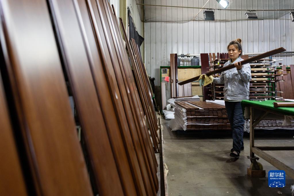 3月7日,在七臺河市雙葉家具實業有限公司,工人朱亞維在生產車間作業。