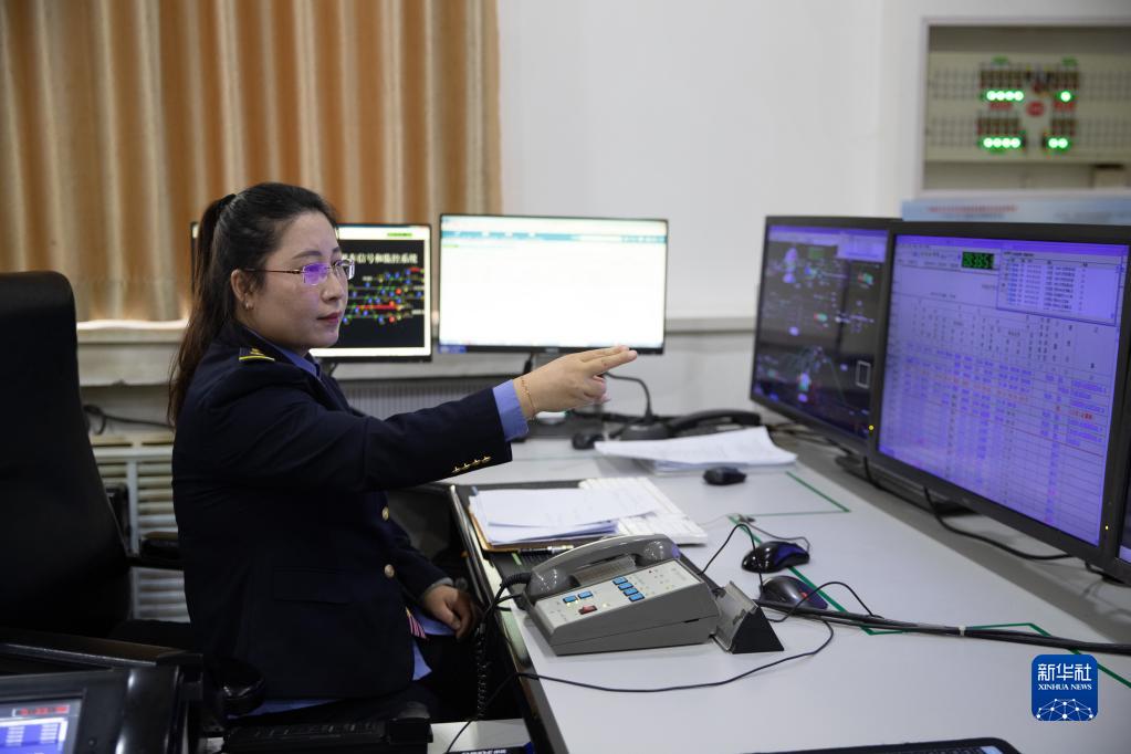 3月7日,在大慶車務段大慶西站行車室,值班員張俊在指揮車輛進站。