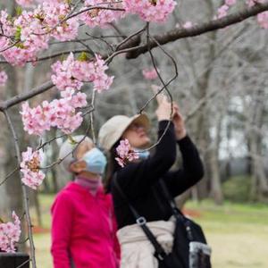 3月8日,人們在上海市寶山區顧村公園觀賞櫻花。