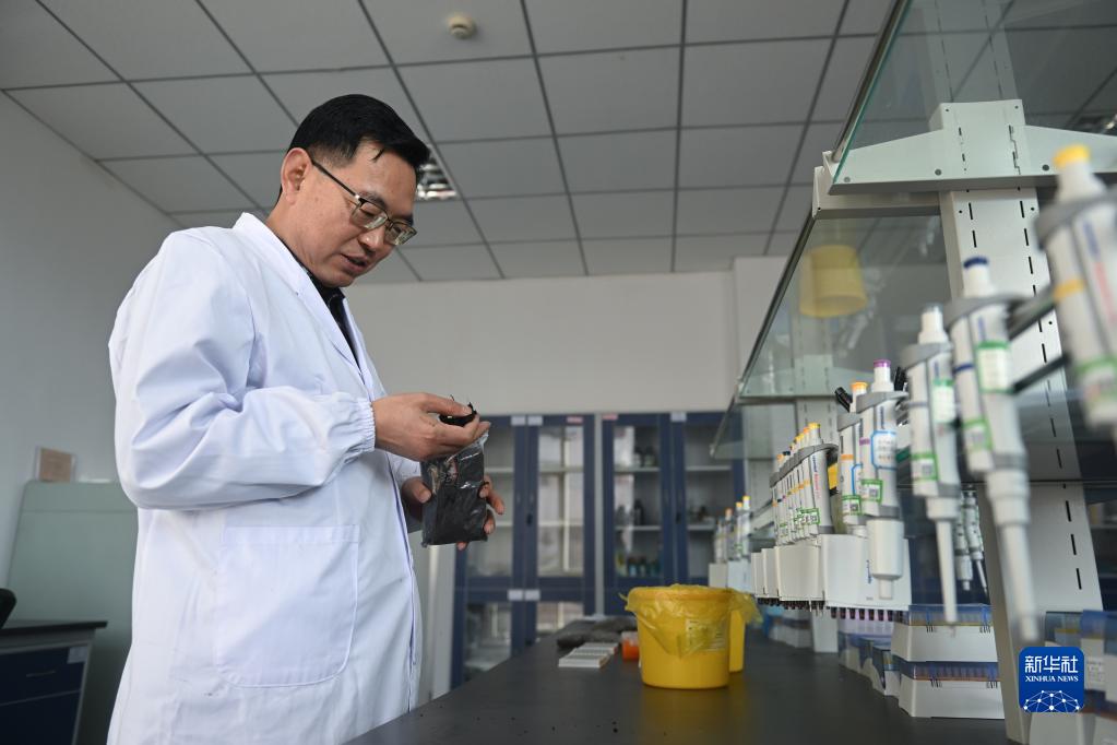 2月24日,在位于青海省海北藏族自治州的青海省高寒草地適應性管理重點實驗室,董全民在查看土壤樣本。