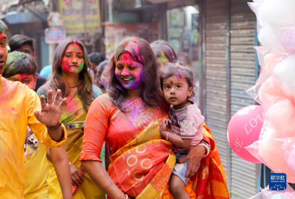 灑紅節也叫胡里節,人們在節日期間互相涂抹顏料,迎接春天的到來。