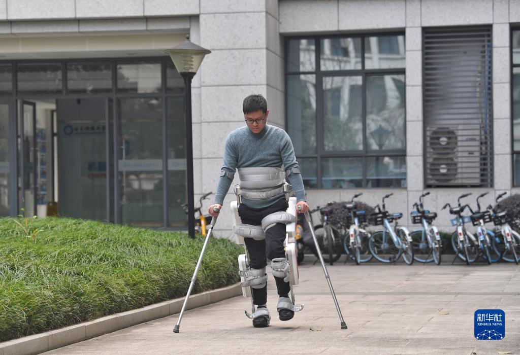 3月6日,一名截癱患者在外骨骼機器人的輔助下行走。