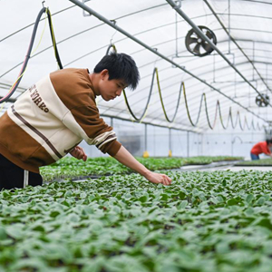 3月8日,工作人員在杭州市臨平區的杭州康成農業科技有限公司的溫室內嫁接菜苗。