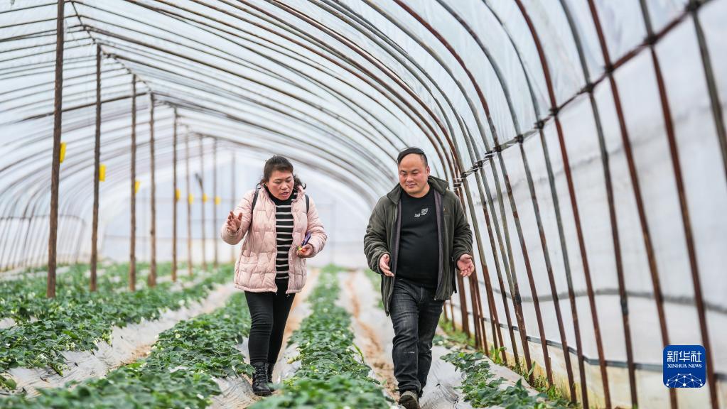李世瑤(右)在鐘山區保華鎮海螺村解答種植戶疑問并提供技術指導(2月25日攝)。