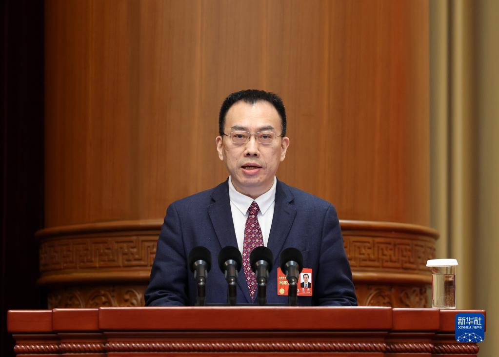 3月9日,全國政協十四屆一次會議舉行視頻會議,委員作大會發言。這是在主會場,徐濤委員代表農工黨中央作大會發言。