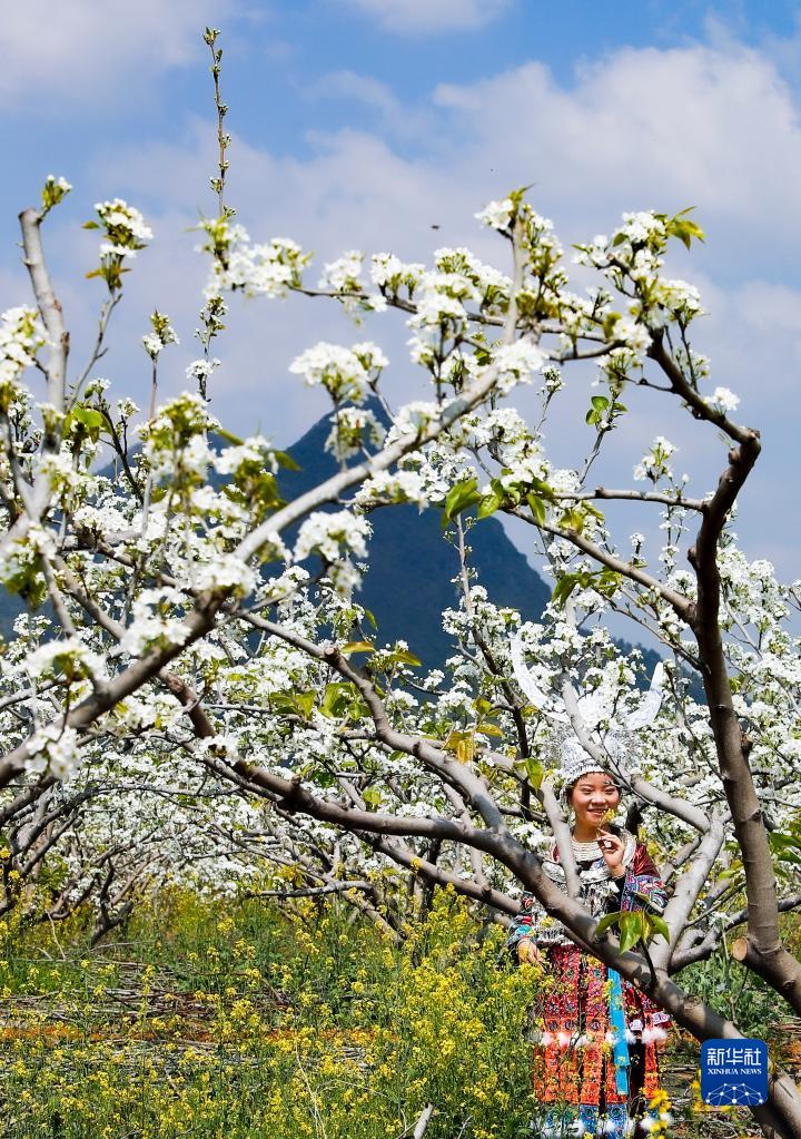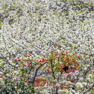 近日,廣西柳州市融安縣潭頭鄉梨花盛開,吸引游人前來游玩拍照。