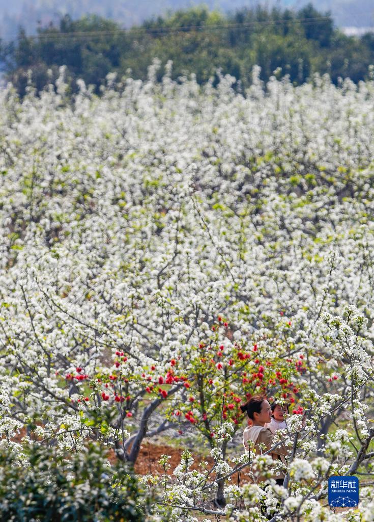 近日,廣西柳州市融安縣潭頭鄉梨花盛開,吸引游人前來游玩拍照。