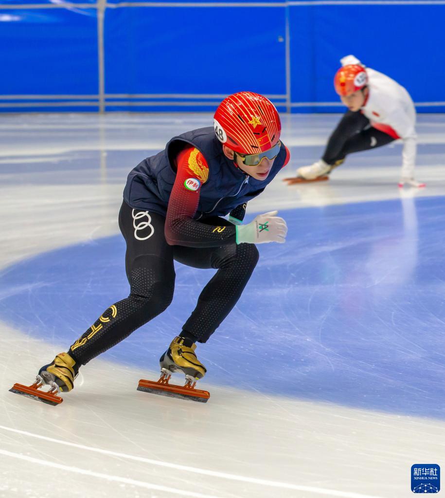 當日,中國短道速滑隊在韓國首爾進行賽前訓練,備戰將于3月10日至12日在此舉行的2023年短道速滑世錦賽。