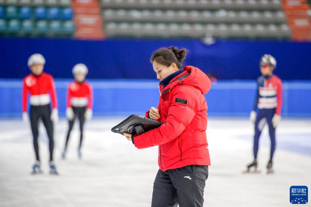 3月9日,中國短道速滑隊主教練張晶在現場指導。