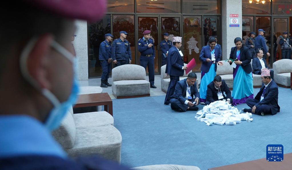 3月9日,在尼泊爾加德滿都,工作人員在選舉中計票。