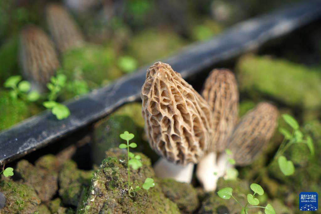 這是在四川省成都市大邑縣新場古鎮燈籠社區一處種植大棚里拍攝的羊肚菌(3月8日攝)。