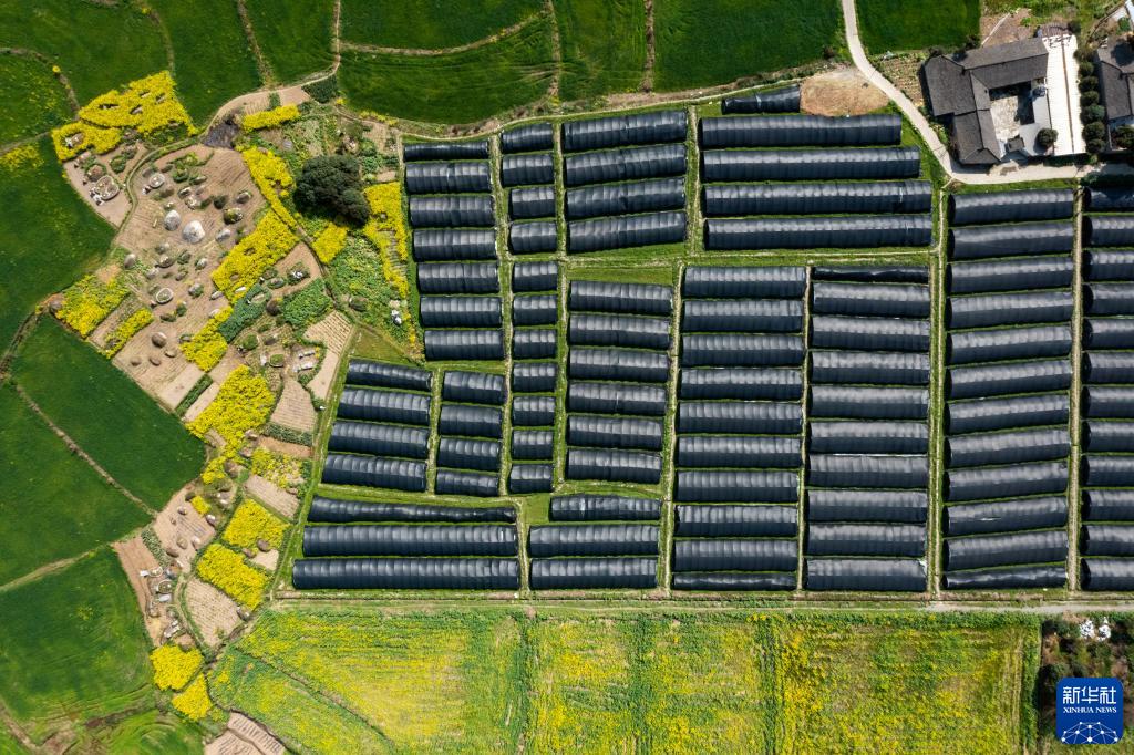 這是在四川省成都市大邑縣新場古鎮燈籠社區拍攝的羊肚菌種植大棚(3月8日攝,無人機照片)。