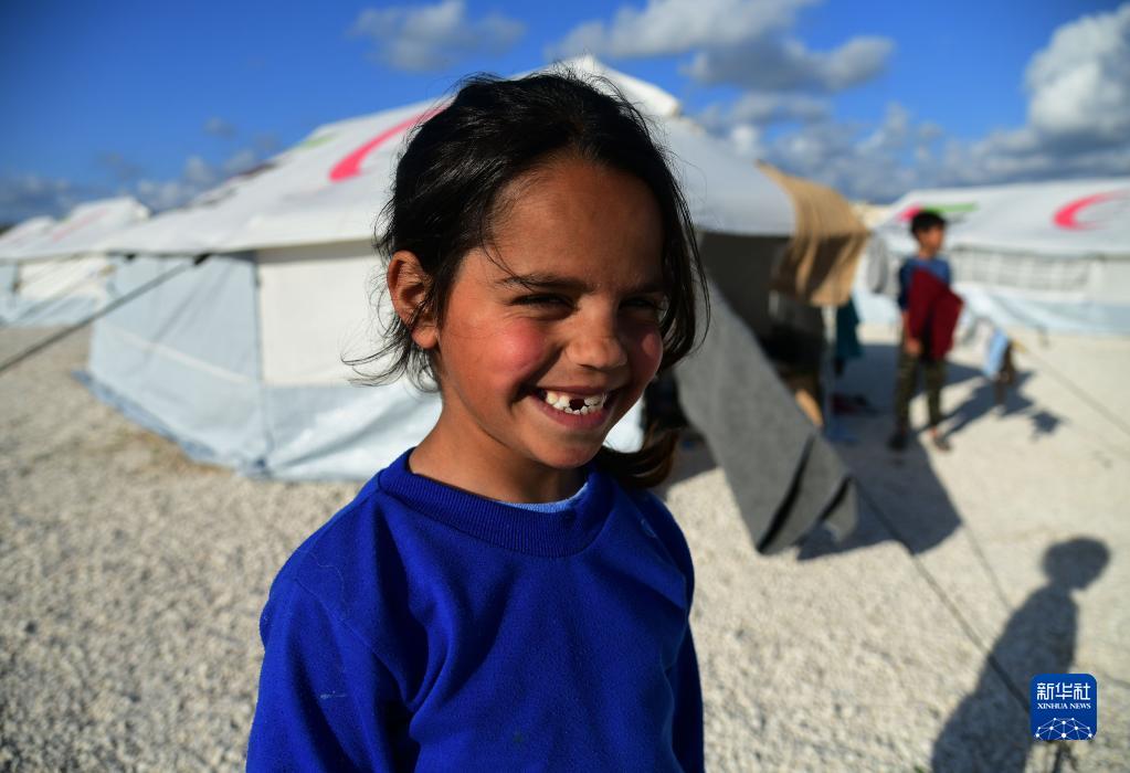 這是3月9日在敘利亞杰卜萊的一處災民安置營內拍攝的兒童。