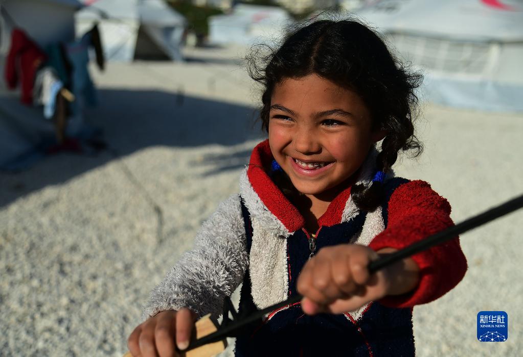 這是3月9日在敘利亞杰卜萊的一處災民安置營內拍攝的兒童。