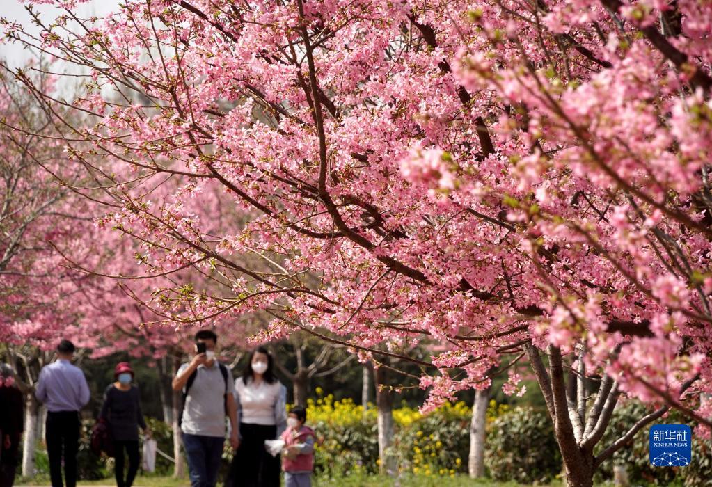 當日,2023年河南·滎陽第八屆黃河櫻花節在滎陽市古柏渡豐樂櫻花園開幕,園內綻放的早櫻吸引市民前來賞花游玩。古柏渡豐樂櫻花園有80余種櫻花,約12萬余株,早、中、晚櫻次第開放,賞花期從3月持續至4月中旬。