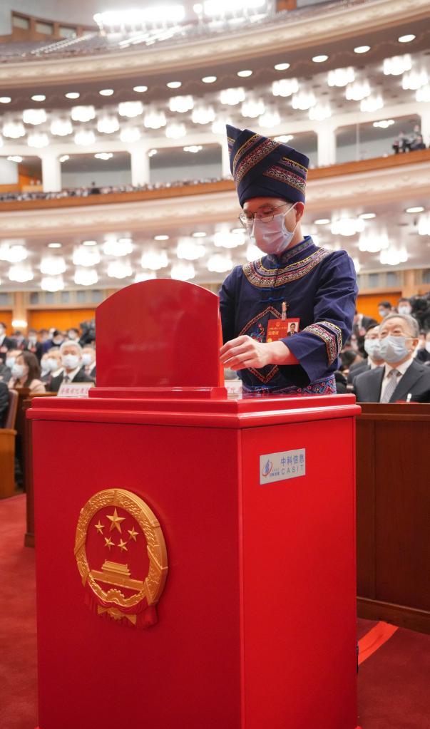 3月10日,十四屆全國人大一次會議在北京人民大會堂舉行第三次全體會議。這是代表在投票。