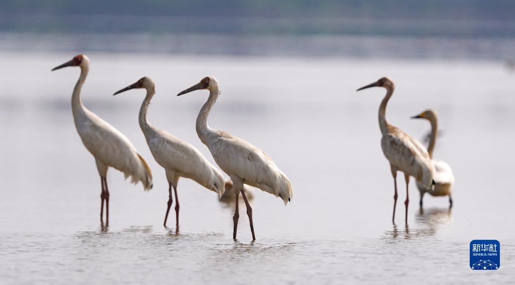 隨著氣溫逐步升高,大批候鳥在江西鄱陽湖區陸續集結起飛,開始北歸之旅。