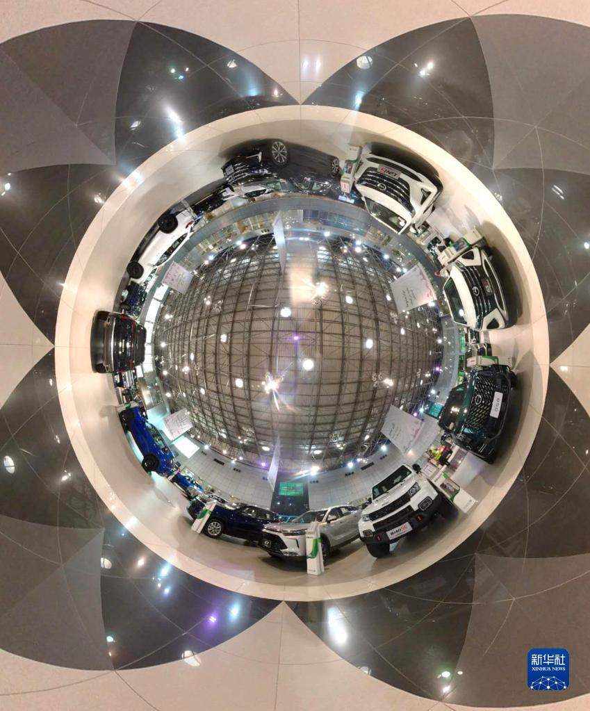 這是3月5日在科威特費爾瓦尼耶省中國汽車專場嘉年華活動上拍攝的中國汽車(全景相機拍攝)。