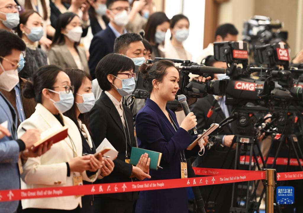 3月11日,全國政協十四屆一次會議第三場“委員通道”集體采訪活動在北京人民大會堂新聞發布廳舉行。這是新華社記者在提問。