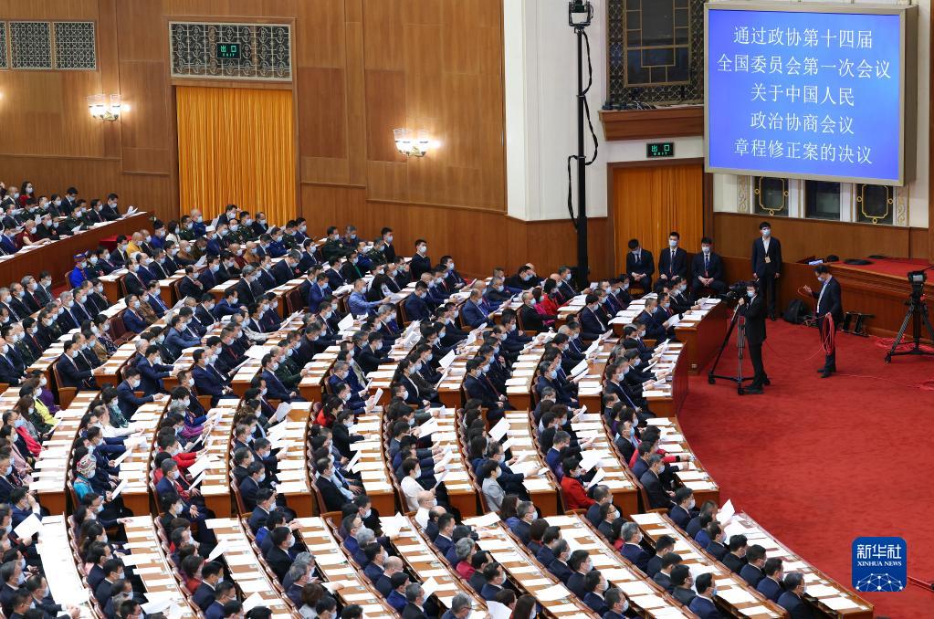 3月11日,中國人民政治協商會議第十四屆全國委員會第一次會議在北京人民大會堂舉行閉幕會。