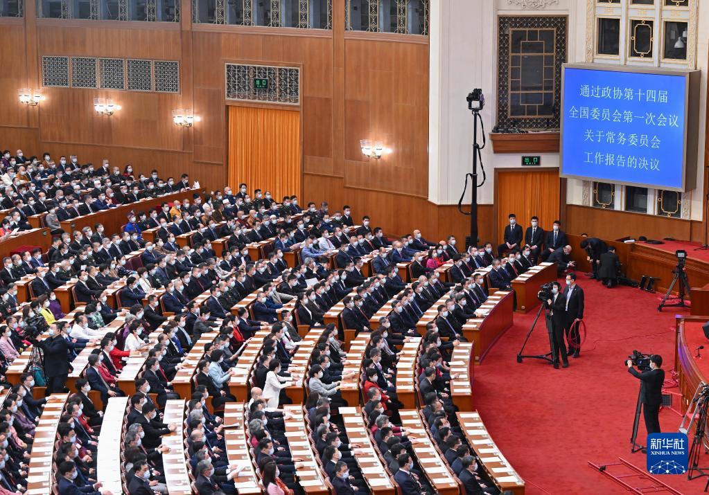 3月11日,中國人民政治協商會議第十四屆全國委員會第一次會議在北京人民大會堂舉行閉幕會。