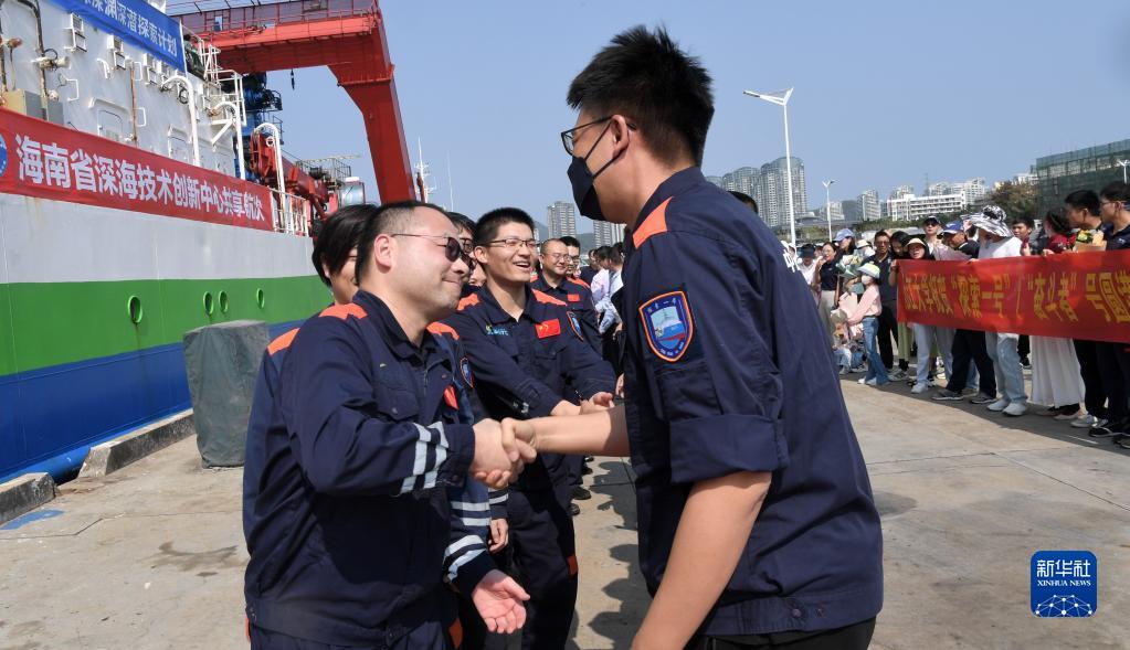 當日,“探索一號”科考船攜“奮斗者”號全海深載人潛水器抵達三亞,圓滿完成國際首次環大洋洲載人深潛科考航次任務。