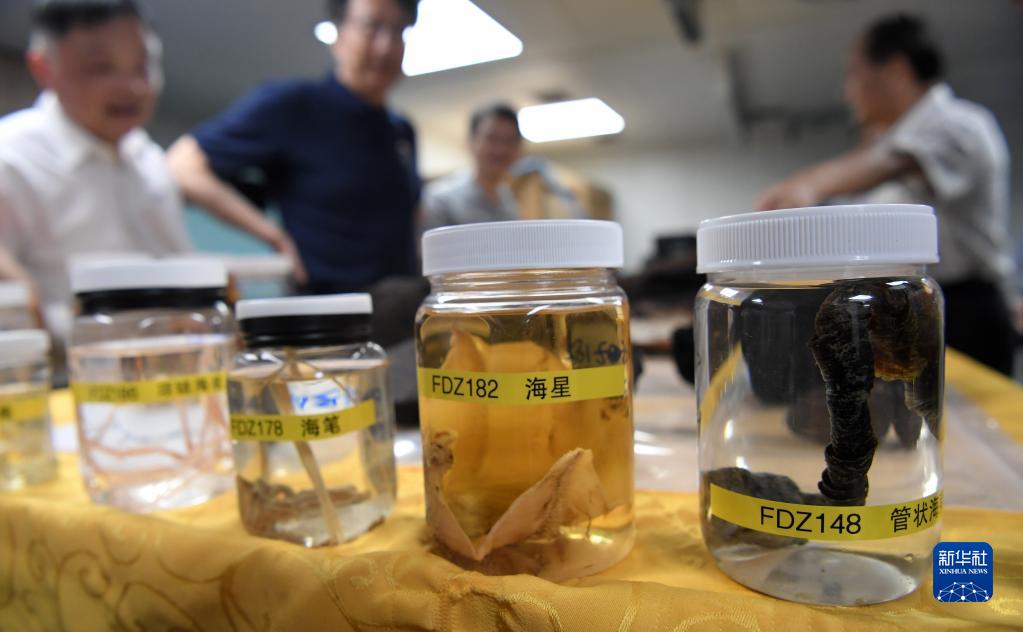 3月11日,“探索一號”科考船攜“奮斗者”號全海深載人潛水器抵達三亞,科研人員在介紹采集的深淵宏生物、巖石、結核、沉積物樣品。