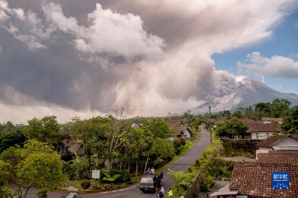這是3月11日在印度尼西亞日惹拍攝的噴發的默拉皮火山。