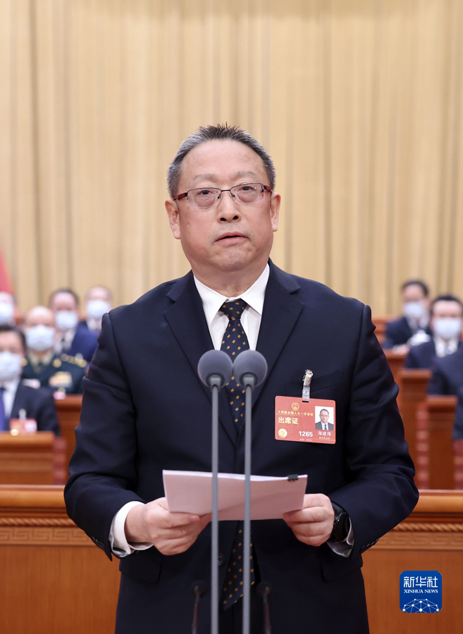 3月12日,十四屆全國人大一次會議在北京人民大會堂舉行第五次全體會議。鄭建邦主持會議。