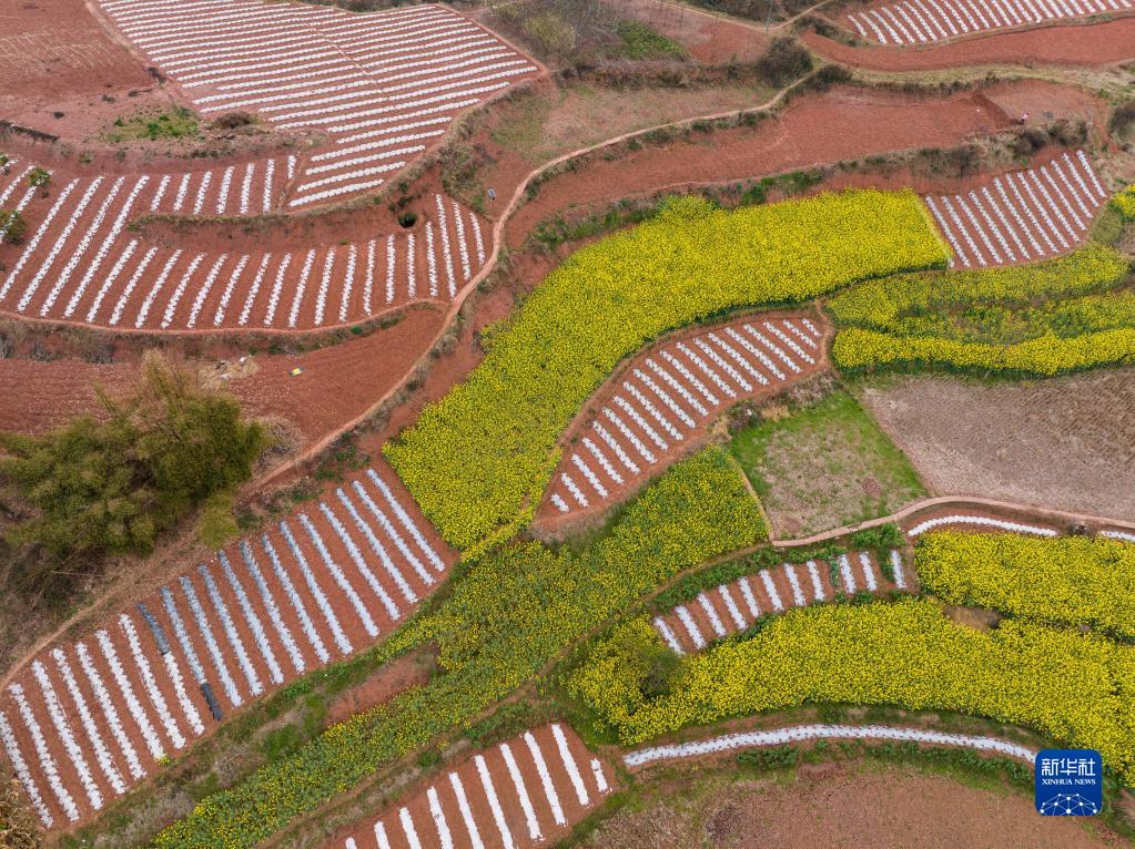 這是3月11日拍攝的四川省榮縣樂德鎮天宮廟村的田園景色(無人機照片)。