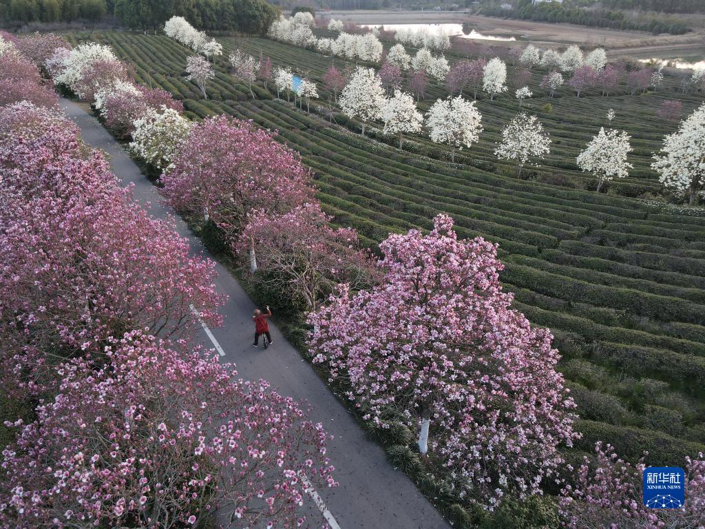 近日,隨著氣溫回升,位于江西省南昌市南昌縣鳳凰溝景區的大片玉蘭花、郁金香、櫻花競相綻放,吸引了眾多游客前往踏春游玩。