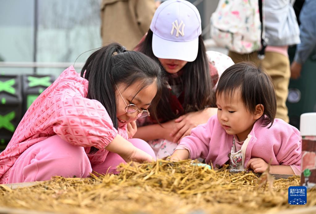 3月11日,在天津市薊州區“eden春山里”生態教育國際生活示范區,小朋友在體驗管理育苗箱。