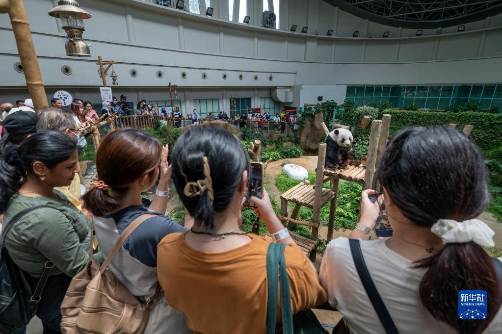 3月11日,游客在馬來西亞吉隆坡觀看大熊貓。