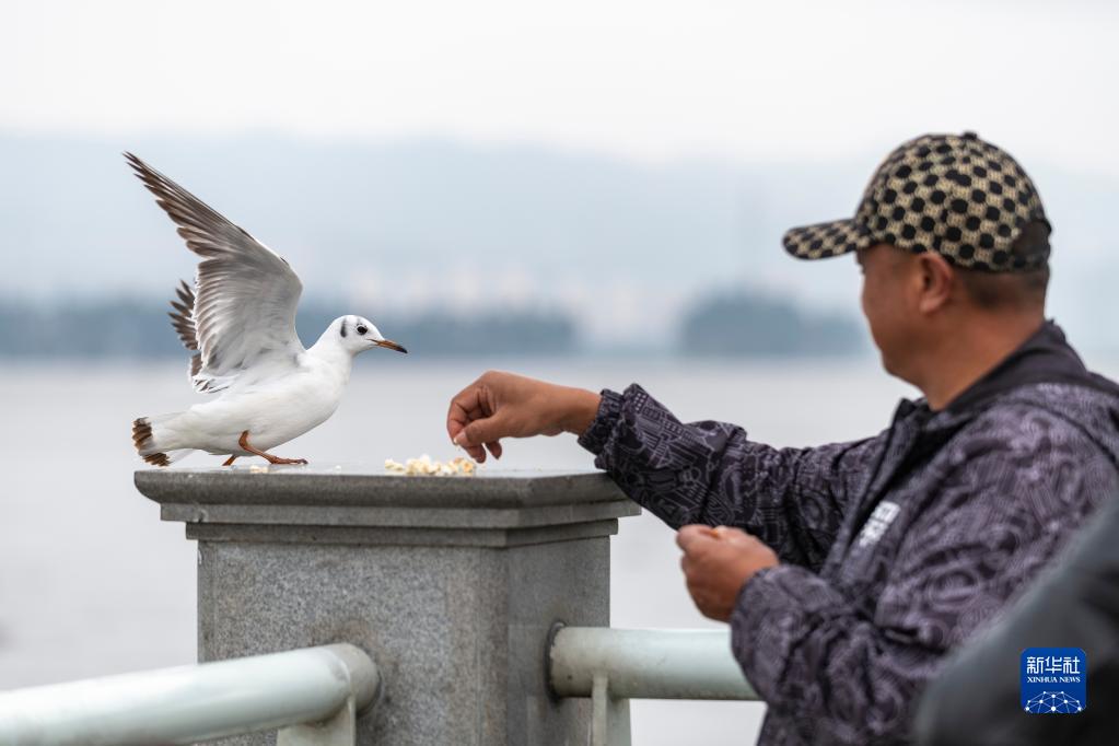 隨著天氣轉暖,棲居春城昆明越冬的紅嘴鷗陸續遷徙北返。不少游客到滇池邊觀鷗喂鷗,為紅嘴鷗送行。
