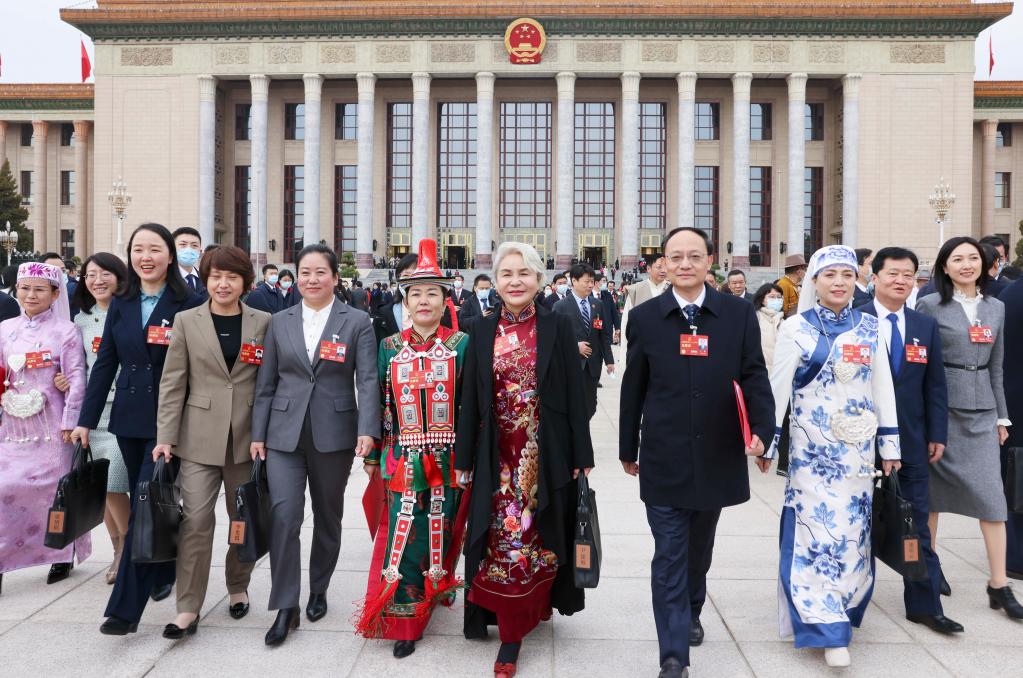 3月13日,第十四屆全國人民代表大會第一次會議在北京人民大會堂舉行閉幕會。這是閉幕會后,代表走出人民大會堂。