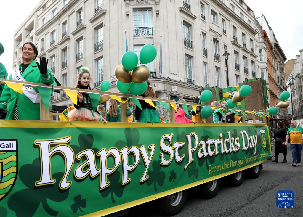 當日,英國倫敦舉行游行活動迎接即將到來的圣帕特里克節。每年3月17日的圣帕特里克節是愛爾蘭傳統節日,為紀念愛爾蘭守護神圣帕特里克而設立。