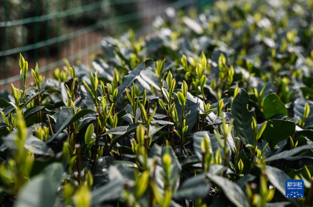 龍井村茶山上長勢喜人的西湖龍井(3月13日攝)。
