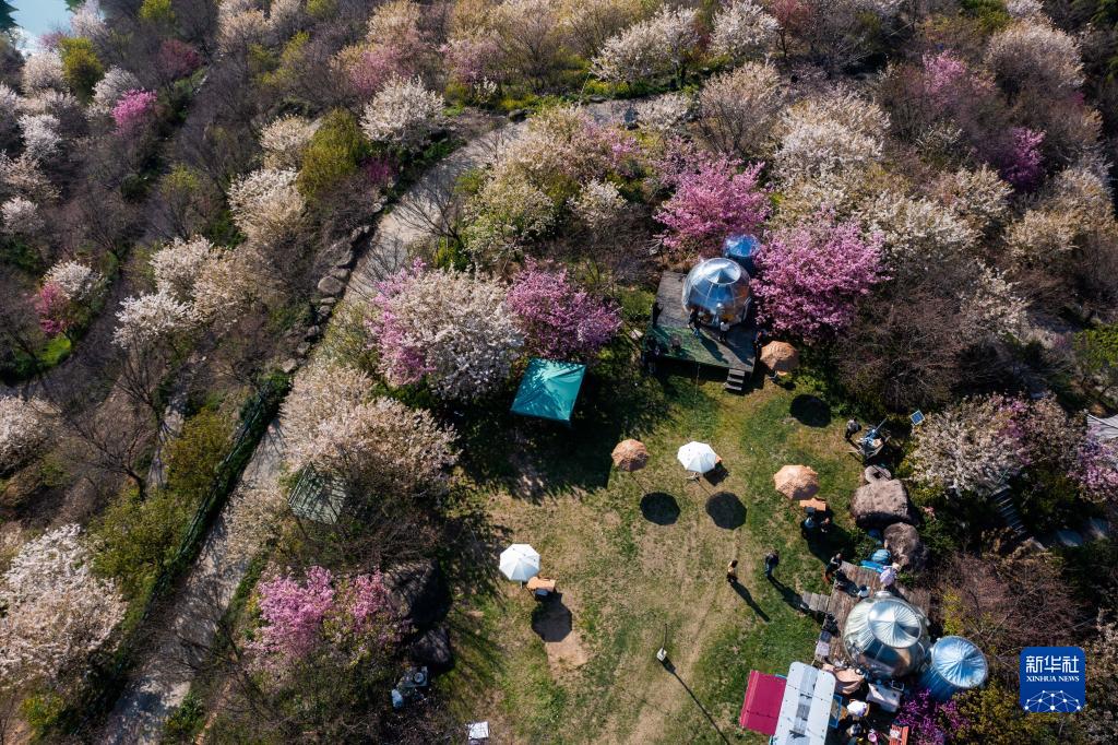 3月13日拍攝的瓶窯鎮塘埠村的杭州櫻花園(無人機照片)。
