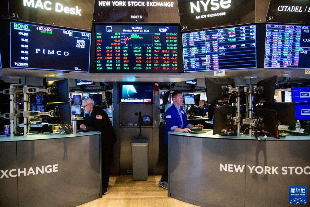3月13日,交易員在美國紐約證券交易所交易大廳工作。