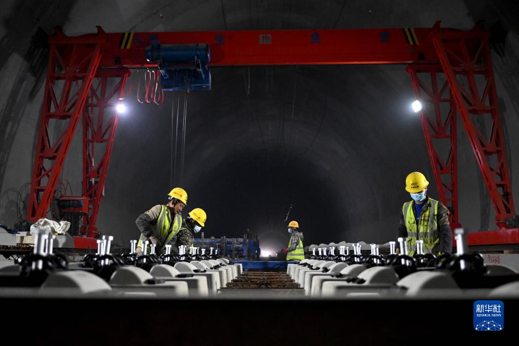 近日,在中鐵十一局池(州)黃(山)鐵路建設現場,工人們搶抓工期進行無砟軌道施工,為后續鋪軌打好基礎。池黃鐵路全長約125公里,設計時速350公里,是武(漢)杭(州)快速鐵路通道的重要組成部分。