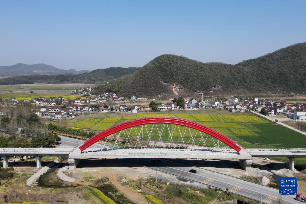 這是3月14日拍攝的中鐵十一局池黃鐵路無砟軌道施工現場(無人機照片)。