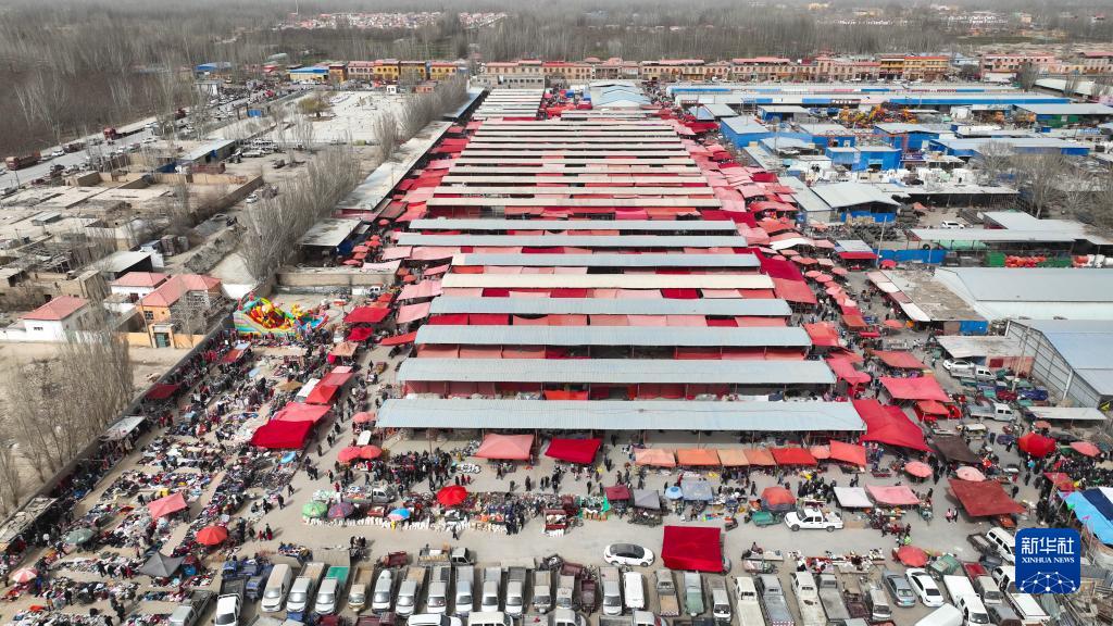 新疆莎車縣的一處綜合巴扎(無人機照片,3月12日攝)。