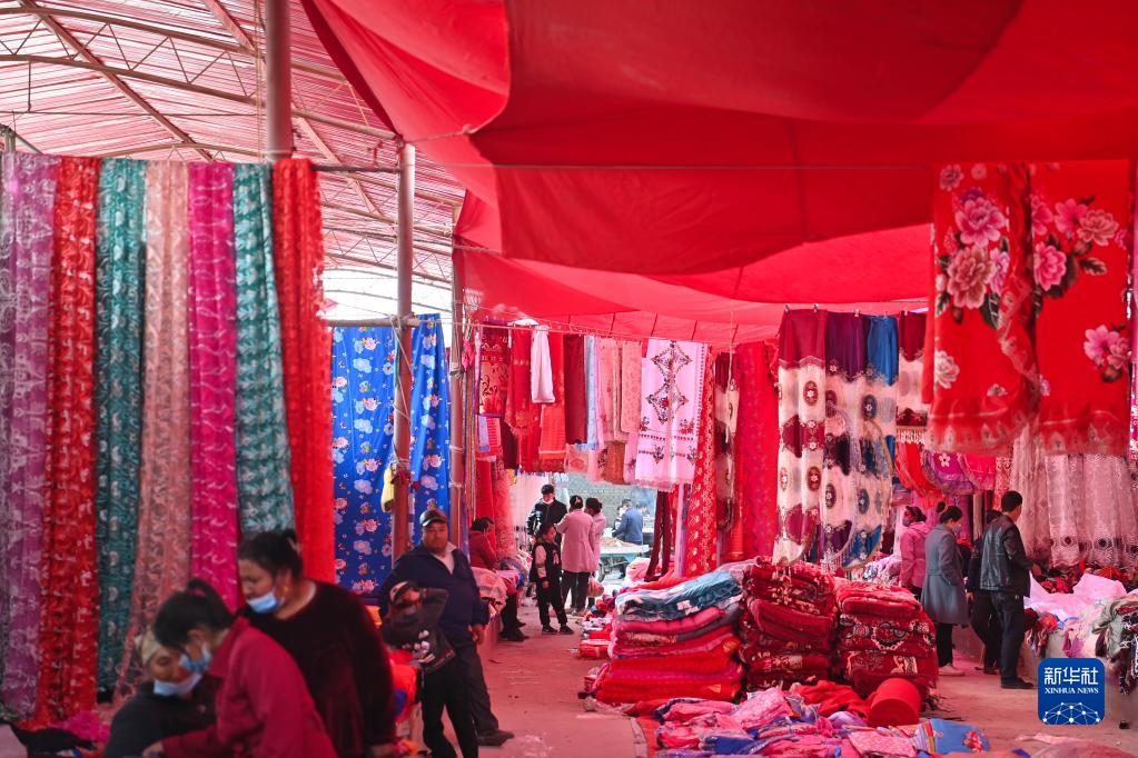 新疆莎車縣綜合巴扎上,人們在選購商品(3月12日攝)。