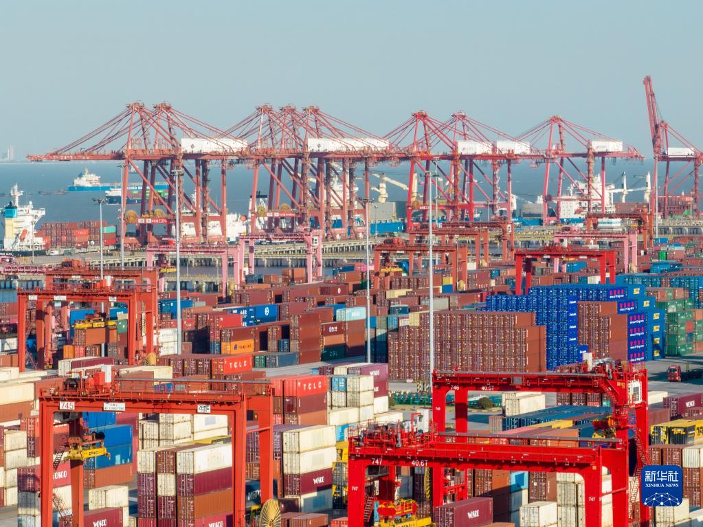 這是3月13日拍攝的江蘇太倉港碼頭(無人機照片)。
