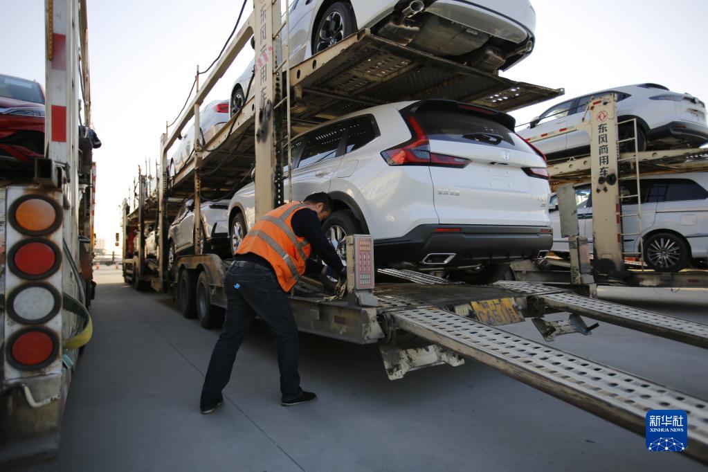 3月13日,工作人員在江蘇太倉港海通汽車碼頭堆場作業。