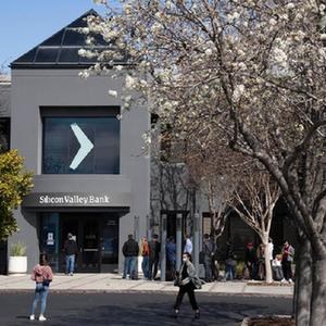3月13日,客戶在美國加利福尼亞州圣克拉拉市硅谷銀行總部外排隊等候辦理業務。