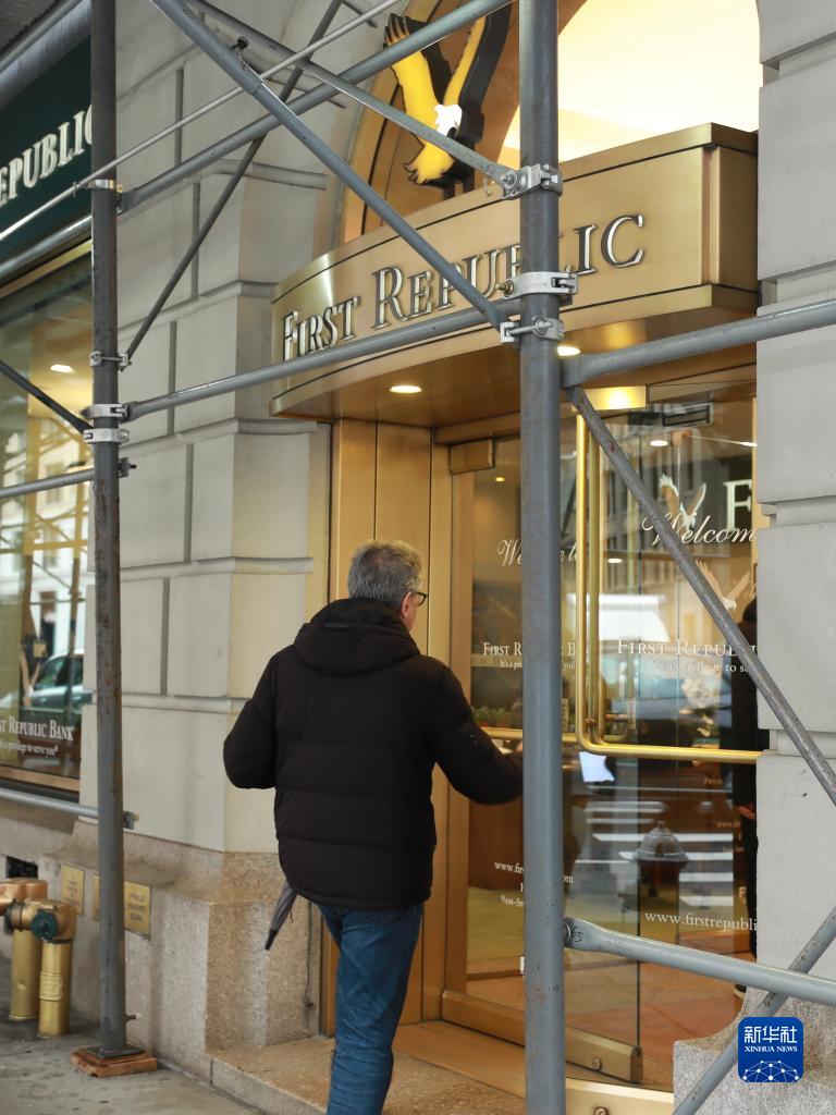 3月13日,在美國紐約,一名男子走進一家第一共和銀行營業部。