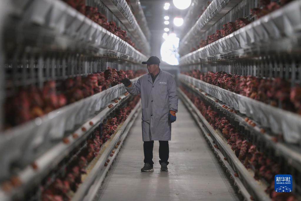 3月14日,村民在位于岫巖縣牧牛鎮的遼寧巖海牧業有限公司產蛋一車間工作。